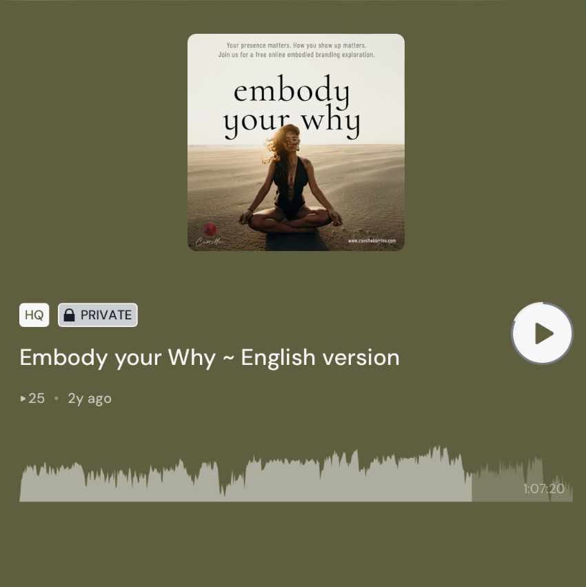 ~ A pre-recorded embodied 1 hour guided session to connect to your Why in english or italian. Make sure you have some good speakers as this will enhance the experience. Prepare the space you will be moving, writing and dancing in, make sure it is safe to move in and you wont get hurt.